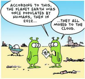 This is a funny "cloud computing" comic clip that surfaced this week. Humans populated earth, but moved to the cloud in 2012. What’s next? Mars Computing? Saturn Computing? Enjoy.