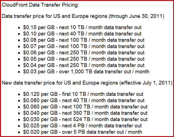 June 11, 2011Amazon Web Services suffered a massive outage back in April, one that caused all sorts of havoc developers. So, here’s one way that Amazon is giving back to those who use its platform. The company just announced that it will be lowering the price for its AWS Data Transfer service. Effective July 1, the company will no longer charge for data transfer in. At the same time, it has lowered prices for data transfer out in the U.S. and Europe, providing double digit savings to some customers.